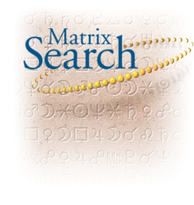 Matrix Search es un software profesional de astrología para búsquedas/tránsito-progresión que permite crear investigaciones personalizadas o usar búsquedas predefinidas (“One-Click Select Searches”) como tránsito-a-tránsito, tránsito-a-natal, progresiones, arcos, patrones etc. Permite incluir cualquier planeta, cuerpo celeste o punto astrológico (fijos, cúspides natales, estrellas fijas, partes árabes etc.). Muestra resultados en lista o exploración (scan), con filtros, ordenaciones, salida en PDF.