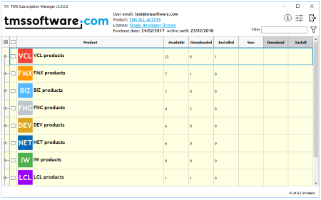 TMS Subscription Manager se puede utilizar para la primera instalación de todos los productos después de la compra, así como para comprobar si hay actualizaciones disponibles y, de ser así, descargar e instalar actualizaciones. Los usuarios con una suscripción activa pueden obtener TMS Subscription Manager después de iniciar sesión en nuestro sitio web.