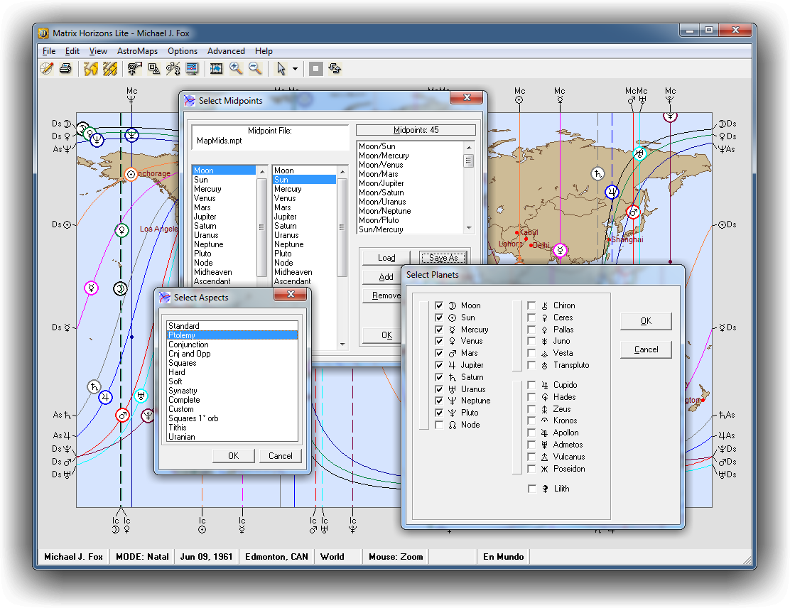 Generación de Gráficos Armónicos: Creación intuitiva de gráficos armónicos, permitiendo la exploración profunda de la astrología armónica. Backup y Restauración de Base de Datos de Nombres: Facilidad para guardar y restaurar bases de datos de nombres, garantizando seguridad e integridad de los datos. Atlas Actualizado: Incluye datos actualizados de horario de verano, asegurando precisión en los cálculos astrológicos. Gráfico Rápido de Tránsitos: Herramienta para generar gráficos instantáneos de tránsitos planetarios, útil para astrología horaria. Búsqueda Avanzada con Search Lite: Módulo que permite localizar combinaciones planetarias y proporcionar los horarios de su ocurrencia a lo largo de un período de tiempo. Exhibición de Dos Gráficos: Visualización simultánea de dos gráficos, como gráfico natal y gráfico de retorno solar, facilitando comparaciones. Control de Fecha Actual: Ajuste dinámico de la fecha y hora de los gráficos, permitiendo animaciones de tránsitos, progresiones y direcciones. Interpretación de Partes Árabes: Listado de las posiciones de 131 Partes Árabes, con fórmulas e interpretaciones asociadas. Gráficos de Fase Planetaria: Creación de gráficos que ilustran los ángulos entre pares planetarios, ofreciendo ideas adicionales.